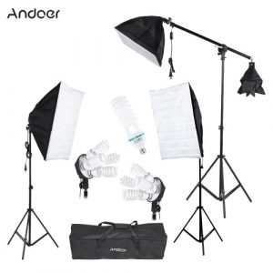 Photography Studio Lighting Kit 3pcs Softbox Tripod Stand 45W 135W Bulb Cantilever with Oxford Bag