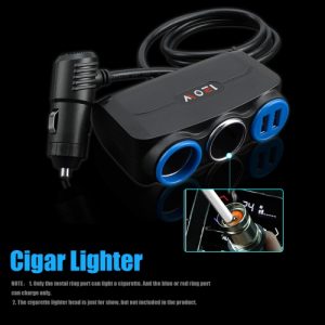 Universal 12V-24V Auto Cigar Lighter With Two-Port Socket 120W Dual USB Ports