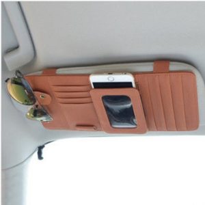 Universal Multi-function Car Sun Visor CD Clip Card Leather Bag Phone Sunglasses Holder