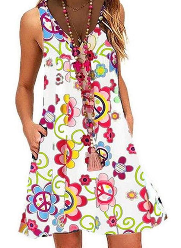 White Size Tunic Floral Plus Size Summer Dresses