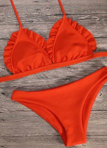 Women Bikini Set Push Up Swimwear Swimsuit Ruffle Low Waisted Padded Two Piece Bathing Suit Beach Wear