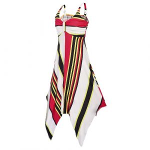 Women Beach Dress Geometric Stripe Print V Sleeveless Asymmetric Hem Swing Boho Casual One-Piece Blue/Yellow