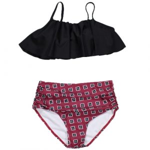Women Bikini Set Ruffles High Waist Ruched Padded Wireless Two Piece Swimsuit Swimwear