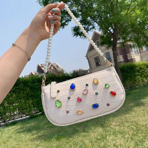 Women Crocodile Pattern Gem Shoulder Bag Crossbody Bag