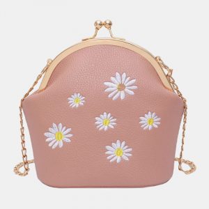 Women Daisy Embroidery Chains Hasp Crossbody Bag Shoulder Bag