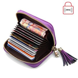 Women Genuine Leather RFID Quilted Card Holder Girls Tassel Zipper Short Wallet Coin Bags