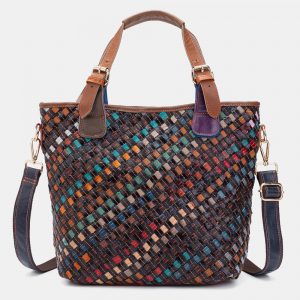 Women Genuine Leather Weave Vintage Handbag Crossbody Bag