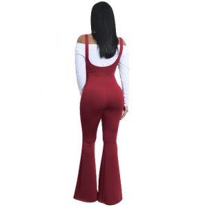 Women Jumpsuit Solid Suspender Strap Sleeveless Open Back Wide Flared Legs Bell Bottom Sexy Overalls