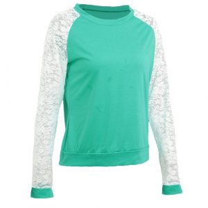 Women Lace Solid Shirts Crochet Splice Long Sleeve Slim Casual Basic Tops Casual Blouse