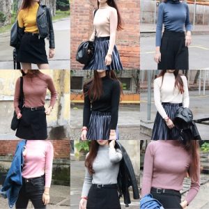 Women Knit Sweater Pullover Jumper Turtleneck Long Sleeve High Elastic Solid Slim Knitted Tops