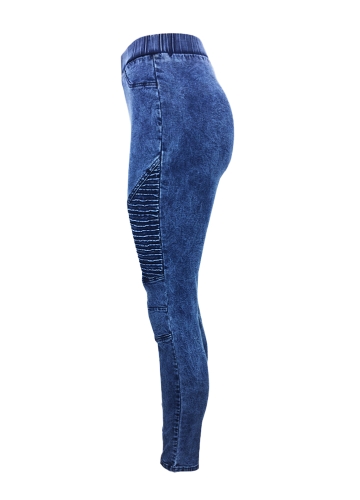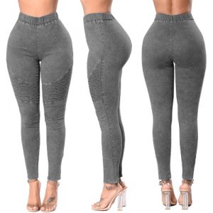 Women Skinny Jeans Denim High Waist Elastic Washed Ruched Skinny Pencil Trousers Tights Leggings