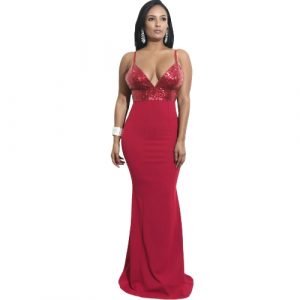 Women Sexy Sequined V Neck Backless Dress Elegant Bodycon Night Party Club Maxi Dress Black/Burgundy