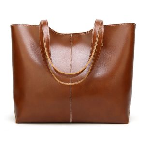 Women Simple Retro Pu Leather Tote Bag Handbag