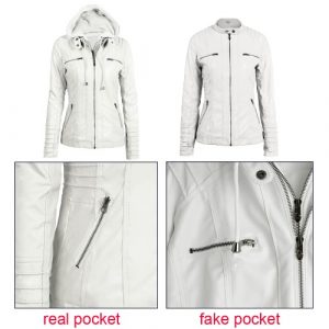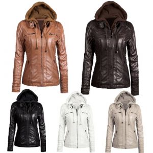 Women’s Faux Leather Hooded Jacket Zippered Hoodie Short Slim Motorcycle Jacket Coat