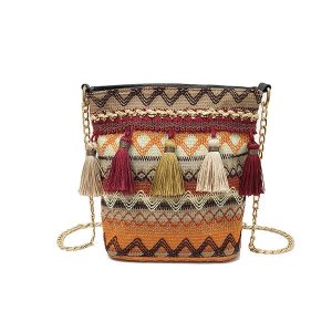 Women Weaving Tassel National Crossbody Bag Chic Bucket Bag