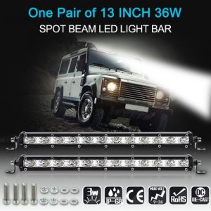 13″ 36W LED Light Bar Slim Work Light Spot Beam Driving Fog Light Road Lighting for Car Truck SUV Boat Marine Jeep