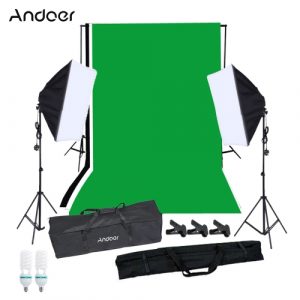 Andoer Photography Softbox Lighting Kit with Studio BackgroundPhotography Studio Portrait Product Light Lighting Tent Kit Photo Video Equipment(2 * 125W Bulb+2 * Sofbox with Single Bulb Socket+3 * Backdrop+Backdrop Stand Set+3 * Clamp+1 * Carrying Bag) UK