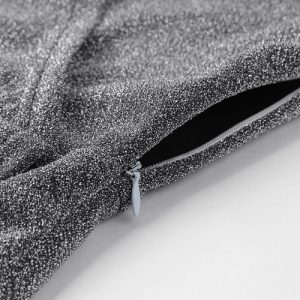 Autumn Winter Women Metallic Dress Deep V-Neck Cross Belted Long Sleeve Party Dress Silver
