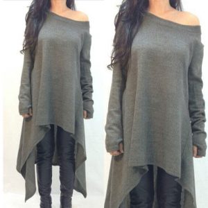 Fashion off Shoulder Long Sleeve Asymmetric Casual Loose T-shirt Dress for Women