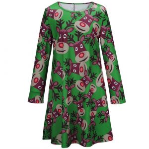 Fashion Chirstmas Women Reindeer Print Color Block Long Sleeve Cute One-piece Mini Dress