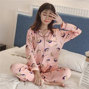 Fashion Casual Womens Milk Silk Pajama Sets Long-sleeved Knit Nightwear Suit