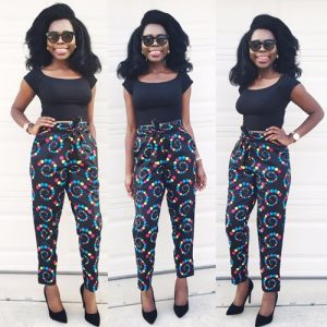 Fashion Women Africa Printed Causal Two Piece Set Crop Top Tie Waist Crop Top + Pants Suits Black