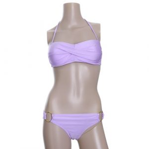 Fashion Sexy Bikini Set Swimwear Swimsuit Beachwear Ruched Strapless Padded Bandeau Top Purple
