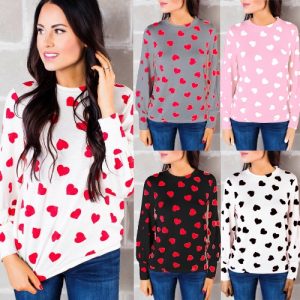 Fashion Women Blouse Heart Print High Neck Long Sleeve Casual Loose T-Shirt Tee Tops