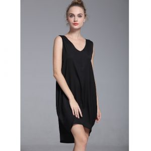 Fashion V Neck High Low Hem Loose Asymmetric Shift Women’s Tank Mini Dress