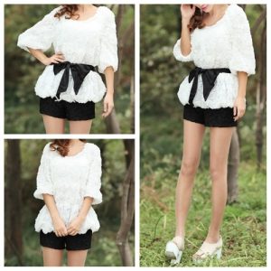 Fashion Women Blouse 3D Rose Flower Mesh Lace Elastic Waist Pullover Tops White