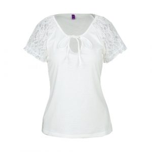Fashion Women Floral Lace Sleeve T-Shirt Self Tie Hollow Out Short Sleeve Casual Solid Basic T-Shirt Tee Tops