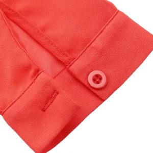 Fashion Women Chiffon Blouse V-Neck Rolled Sleeve Ruched Back Asymmetric Hem Sheer Top Red