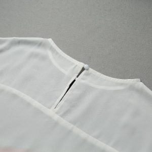 Fashion Women Color-Block Blouse Keyhole Button Back Cap Sleeves O Neck Loose Splicing T-Shirt Casual Top White