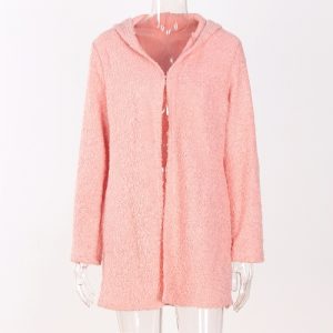 Fashion Women Fleece Hooded Cardigan Open Front Long Sleeve Solid Warm Hoodie Outerwear Loose Sweater Coat