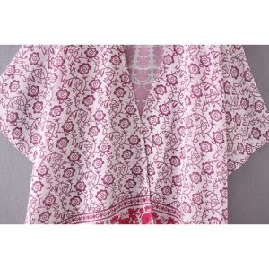 Fashion Women Chiffon Beach Kimono Vintage Mandala Floral Printed Bikini Cover Up Boho Bathing Outwear Jacket Blue/Rose