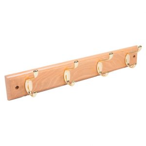 Heavy Duty Hat & Coat Hooks, 4 x Brassed Hooks on Natural Beech Rail