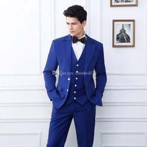 High Quality Two Buttons Royal Blue Wedding Groom Tuxedos Notch Lapel Groomsmen Men Formal Prom Suits (Jacket+Pants+Vest+Tie) W162