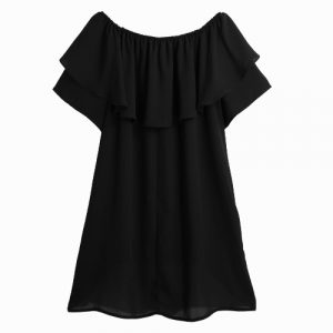 New Fashion Women Chiffon Off-Shoulder Blouse Slash Neck Ruffle Dip Hem Casual Top Black