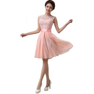 New Fashion Women Chiffon Lace Dress Sleeveless O Neck Solid Color Elegant Princess Party Dress