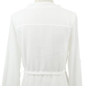 New Fashion Women Chiffon Dress V Neck Drawstring Waist Asymmetric Hem Casual Mini Dress White