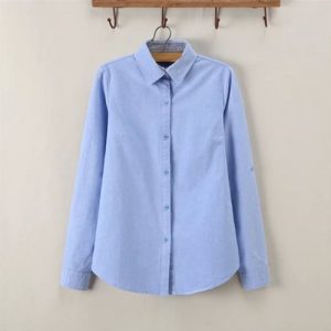 New Fashion Women Shirt Striped Turn-Down Collar Button Placket Solid Color Long Sleeve Blouse Tops