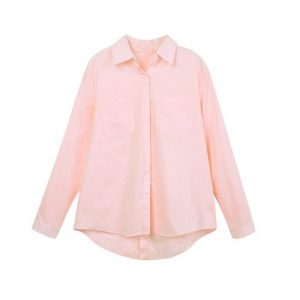 New Fashion Women Loose Shirt Solid Turn-Down Collar Long Sleeve Pocket Casual Blouse Tops White/Pink