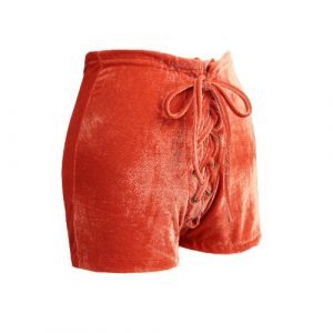 New Sexy Women High Waist Lace Up Velvet Shorts Bodycon Club Punk Hot Casual Shorts Pants Black/Burgundy/Orange