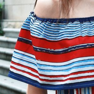 New Sexy Women Jumpsuit Contrast Stripe Ruffle Off Shoulder Pocket Short Playsuit Rompers Overalls