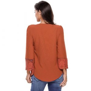 New Sexy Women Lace Button Up Blouse Deep V Neck Pleats Crochet Hem 3/4 Sleeve Loose Lady Blouse Top