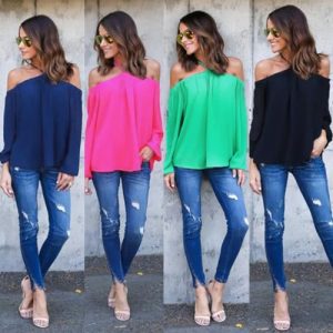 New Sexy Women Off Shoulder Chiffon Blouse Halter Long Sleeve Casual Loose Shirt Summer T-Shirt Tops