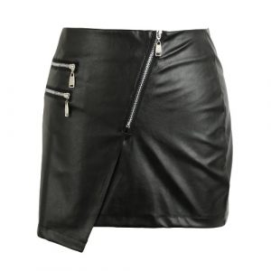 New Sexy Women PU Leather Skirt Front Zipper Split Solid Color Bodycon Short Mini Skirt Tight Skirt Black