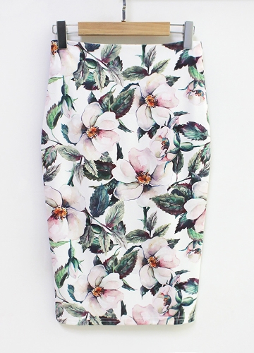 New Women Pencil Skirt Floral Print High Waist Split Vintage Slim Elegant OL Bodycon Midi Skirt