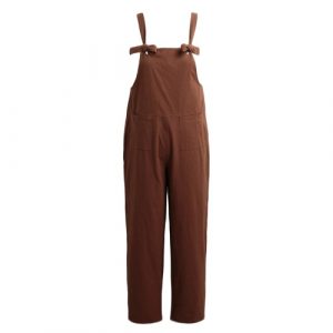 New Women Loose Jumpsuit Overalls Solid Sleeveless Pockets Wide Legs Casual Dungarees Playsuit Rompers