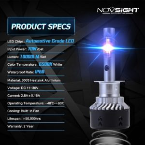 NOVSIGHT H1 LED Car Headlights Bulbs 70W 10000LM H15 Hi/lo Driving Fog Lights H1 H4 H7 H11 9005 9006 D1 Headlamp Light D40